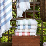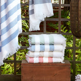 As the name suggests, our lightweight Amado towels and beach blanket will become beloved fixtures of family time spent seaside or poolside. To create a subtle texture, thick stripes alternate between a white terry loop and flat-woven colors that are perfect for sun-drenched days by the water.